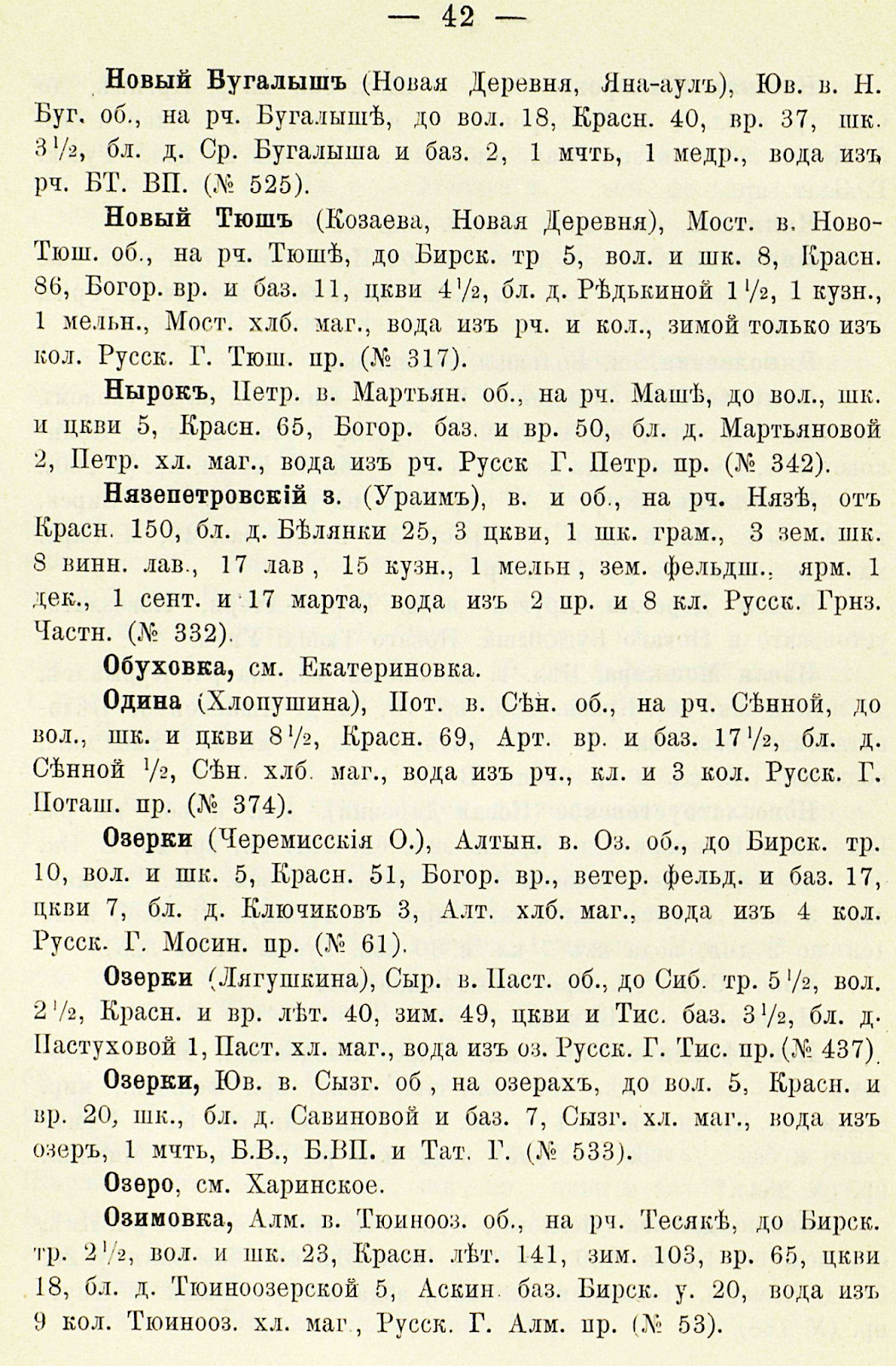 Список населенных мест Красноуфимского у. 1894г.